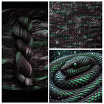 Serpentine is a dark and mysterious colorway featuring a striking mix of black, forest green, and smoky violet. Inspired by the hypnotic shimmer of snake scales and moonlit movement through underbrush, this palette is bold and moody with sharp contrasts and rich tonal depth.