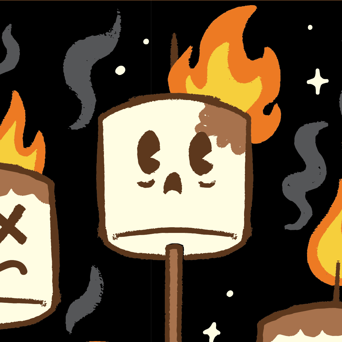 You know how sometimes when toasting a marshmallow it just gets a liiiiittle too close to the fire? And flares up like a spectacular light show of sugary destruction? And gets all melty inside while the outside carbonizes like a warm version of our cold, black hearts? It's absolutely no one's fault when marshmallows get attacked by those beautiful, beautiful flames (so pretty) but we felt it was time to pay tribute to our past victims... uh, sacrifices... No, I mean, our past deliciously fiery accidents. Look, we still use it to make the s'more, so nothing is wasted, like our ancestors using the entire animal.