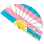 The Trans Pride Flag Fan is a pink, blue and white bamboo folding hand fan featuring the iconic trans pride flag design in its full pastel glory. This trans movement clac fan is a celebration of identity, joy, and unapologetic presence. Whether you're marching at Pride, dancing at a drag show, or clacking in solidarity, this fan makes trans visibility both beautiful and bold.